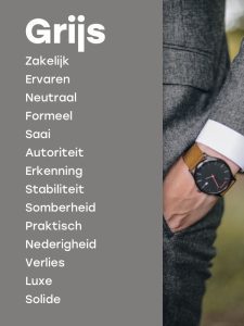 In de kleurenpsychologie staat de kleur grijs voor neutraliteit. Die kleurbetekenis kan te wijten zijn aan het feit dat grijs als schaduw tussen wit en zwart in staat. Vaak wordt deze kleur dan ook geassocieerd met saaiheid, somberheid of onopvallendheid. Ooit van de uitdrukking ‘grijze muis’ gehoord? Hoewel grijs soms negatieve emoties met zich meebrengt is de kleur wel tijdloos en praktisch. De kleur grijs draait om alles wat simpel, eenvoudig en minimalistisch is. Daarnaast worden grijze haren geassocieerd met de wijze en oude generatie. Waardoor de kleur grijs ook laat zien dat je ervaren en zakelijk te werk gaat.