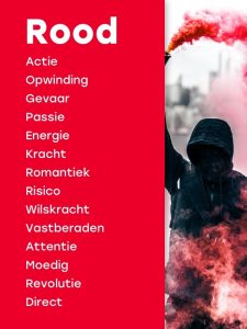 Om te beginnen is rood een warme en positieve kleur. Een kleur die de aandacht vraagt van consumenten en oproept tot actie. Rood wordt geassocieerd met energie, opwinding, wilskracht, moed en vastberadenheid. Maar de kleur draagt ook nog een hele andere lading met zich mee, want welke kleur link je automatisch aan woorden zoals passie, liefde en romantiek? Juist, rood. Zo worden vrouwen die rode kleding dragen vaak aantrekkelijker gevonden dan vrouwen die een andere kleur dragen en zien we met Valentijnsdag cadeaus verpakt in rood, of kaarten met rode harten erop.