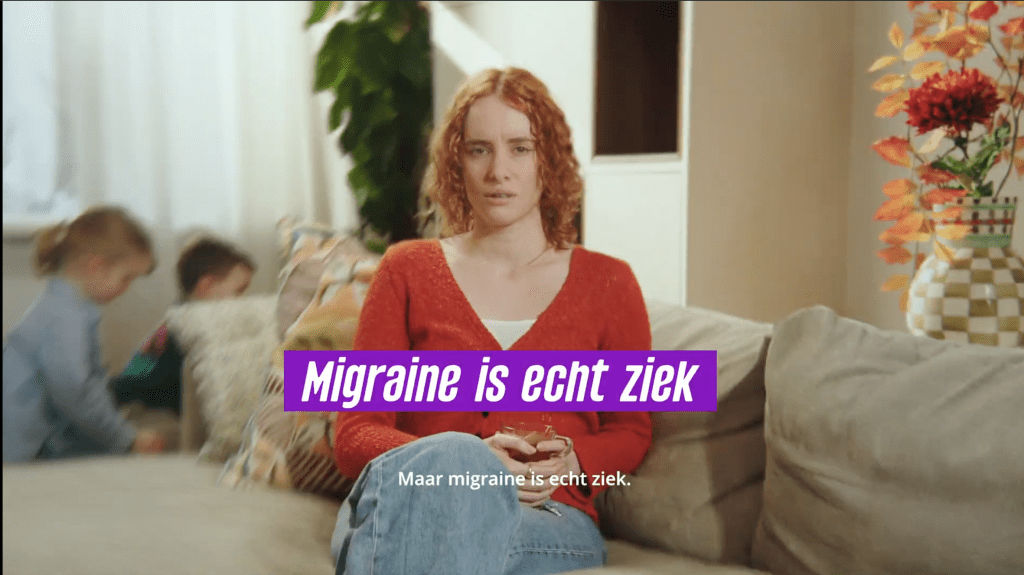 Ons healthcare-team ontwikkelde samen met onze creatieven de campagne ‘Migraine is echt ziek’. Een titel die speelt met de dubbele betekenis van het woord ziek: het benadrukt enerzijds de impact op je gezondheid, en klinkt anderzijds ook stoer en krachtig. Zo combineerden we urgentie en eigenaarschap in één boodschap.